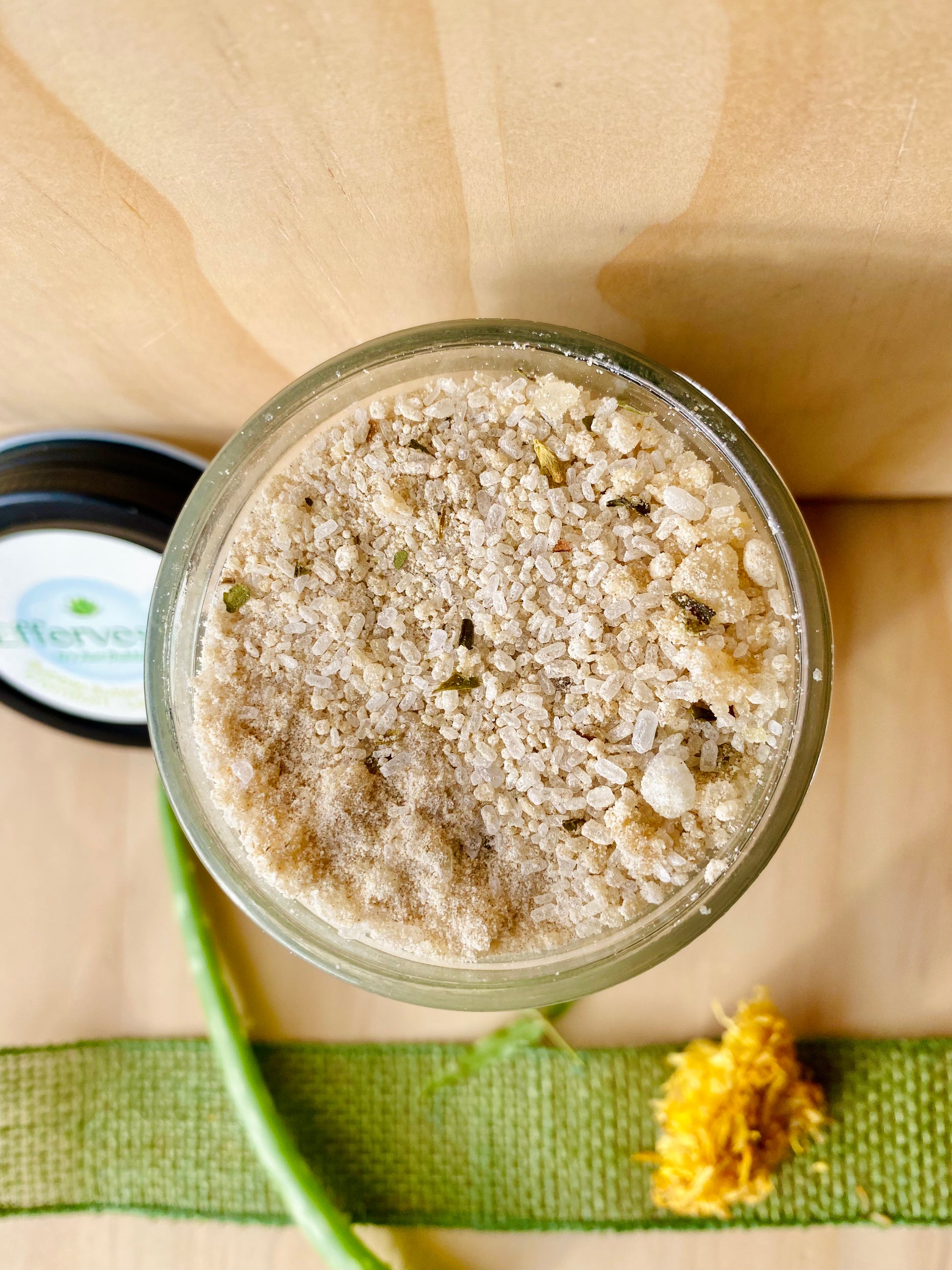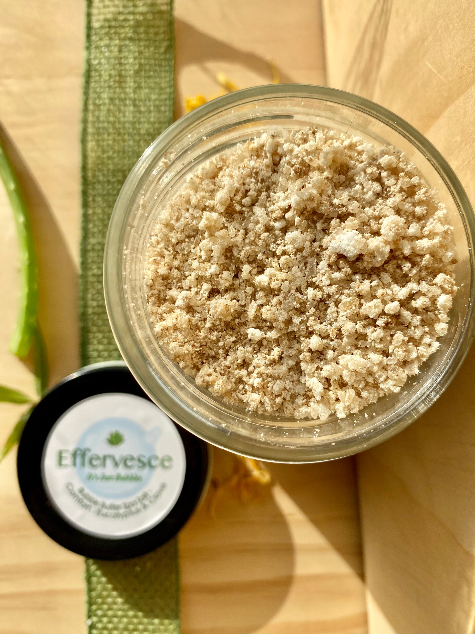 Epsom Salt, Sea Salt, Citric Acid, Baking Soda, SLSA, Shea Butter, Cocoa Butter, Cream of Tartar, Arnica, Aloe Vera, Cramp Bark, Essential Oils of your choice