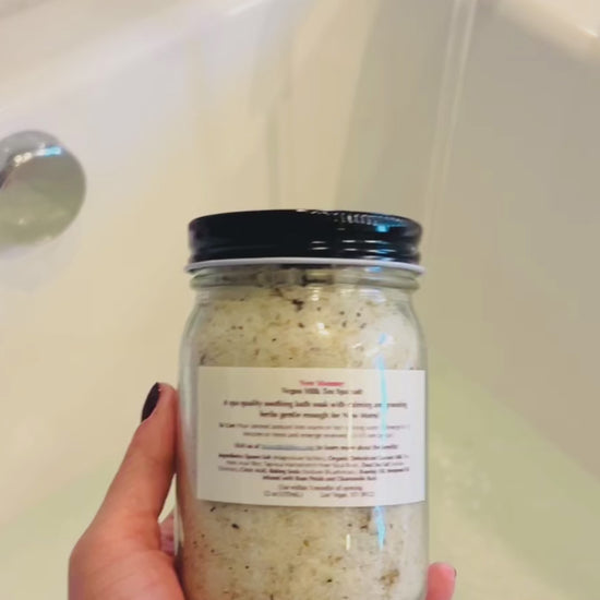 Epsom Salt, Coconut Milk Powder, Sea Salt, Baking Soda, Citric Acid, Herbal Blend: Chamomile, Lavender, Calendula, Rose, Rosemary, Plantain Leaf