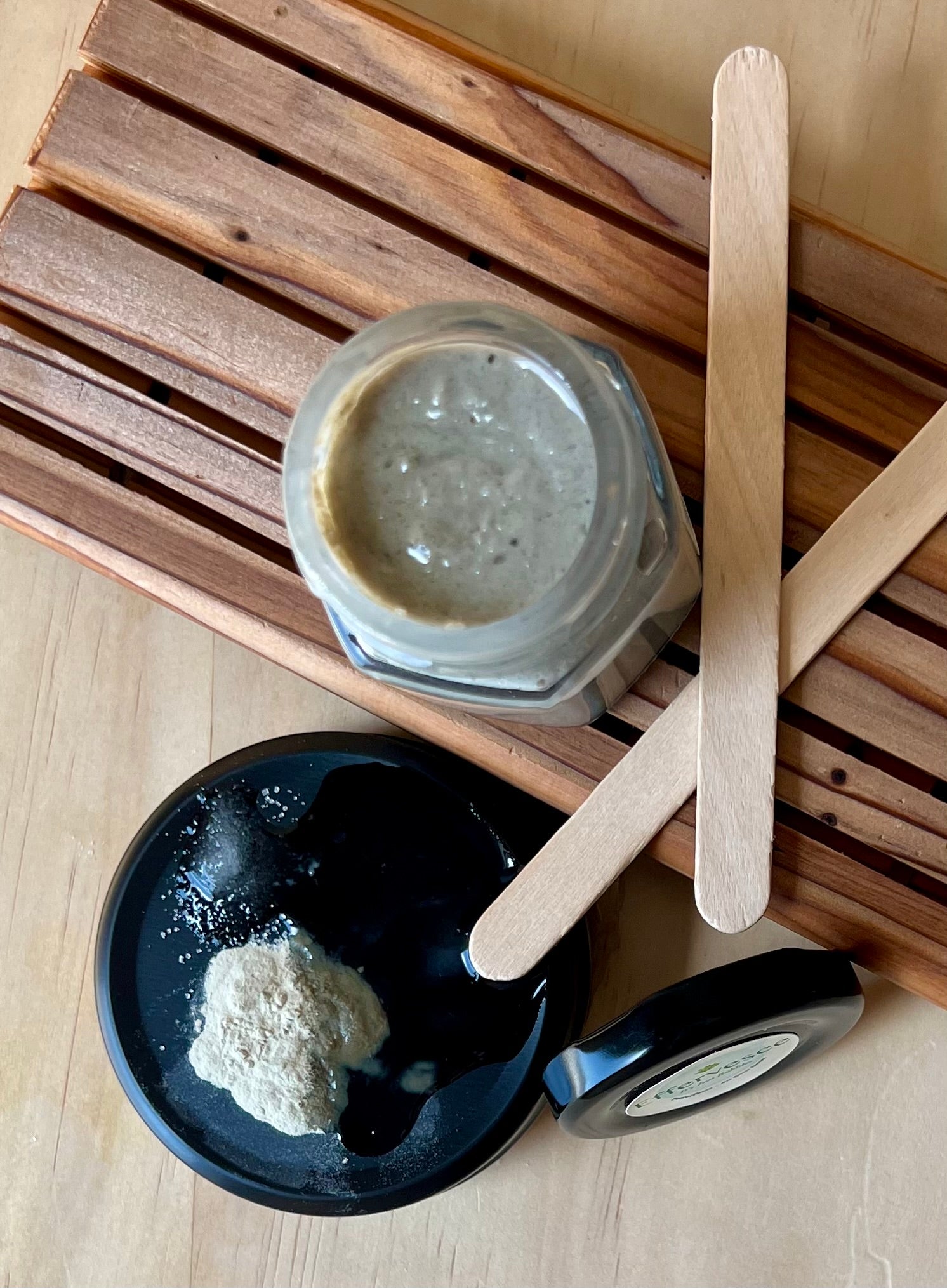 A mildly abrasive, alkaline, volcanic clay with minerals that promote the appearance of healthy teeth and gums. It is great for cleansing because it has charged particles that bind to uninvited bacteria and make them wash away when you rinse, making it a gentle yet deep cleanser.