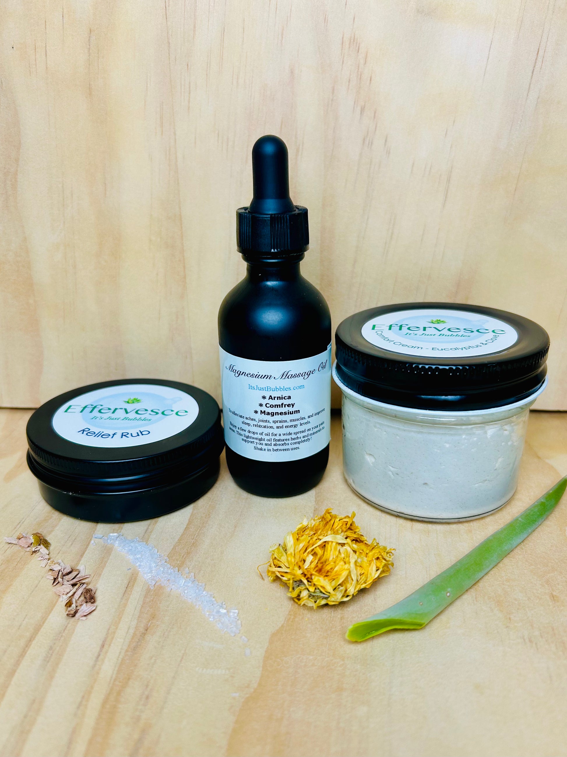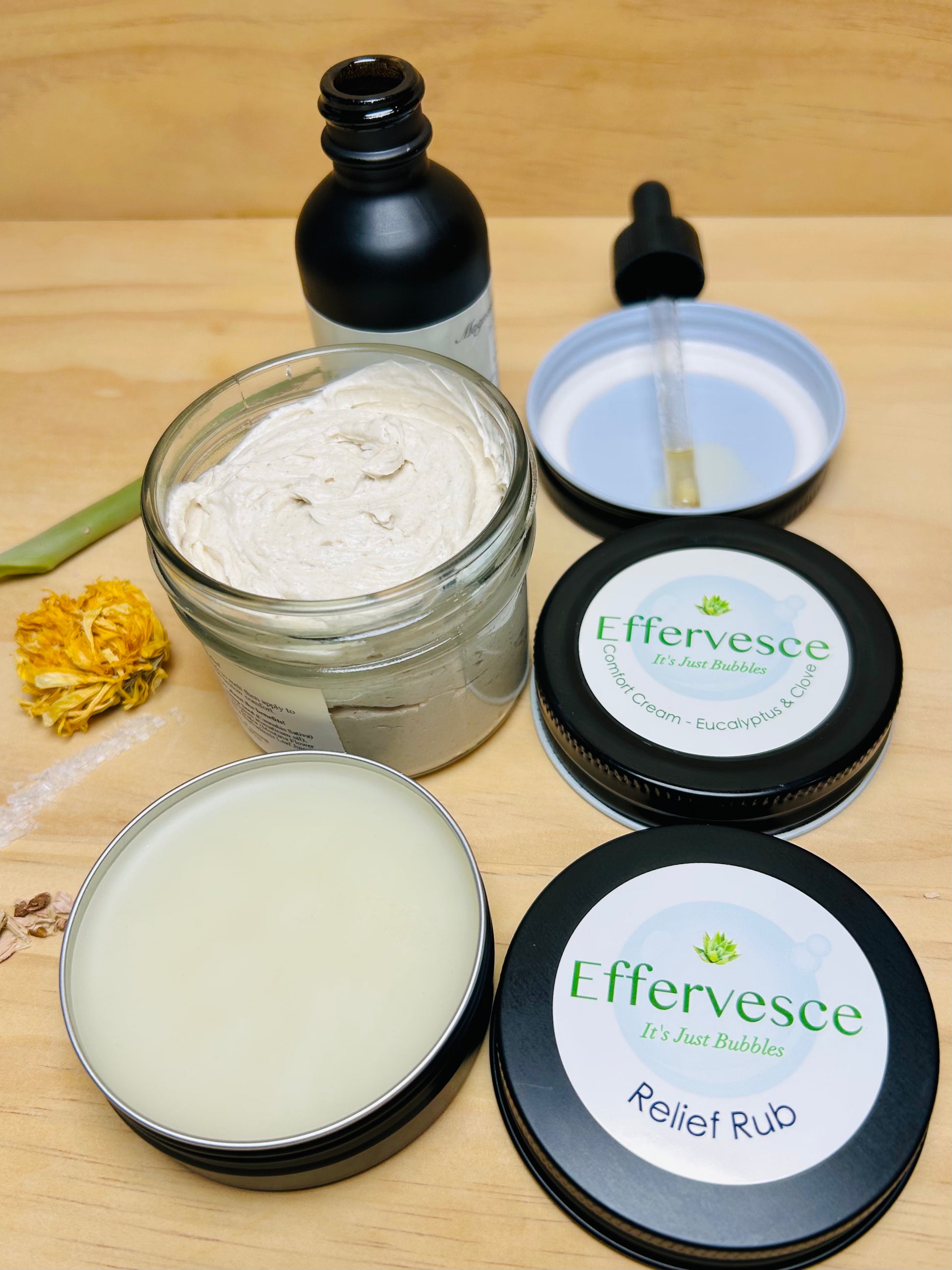 Arnica, Cramp Bark, and Aloe Vera are infused and then whipped into a shea butter blend for daily support for achy muscles, sore joints, or nerve related discomfort.