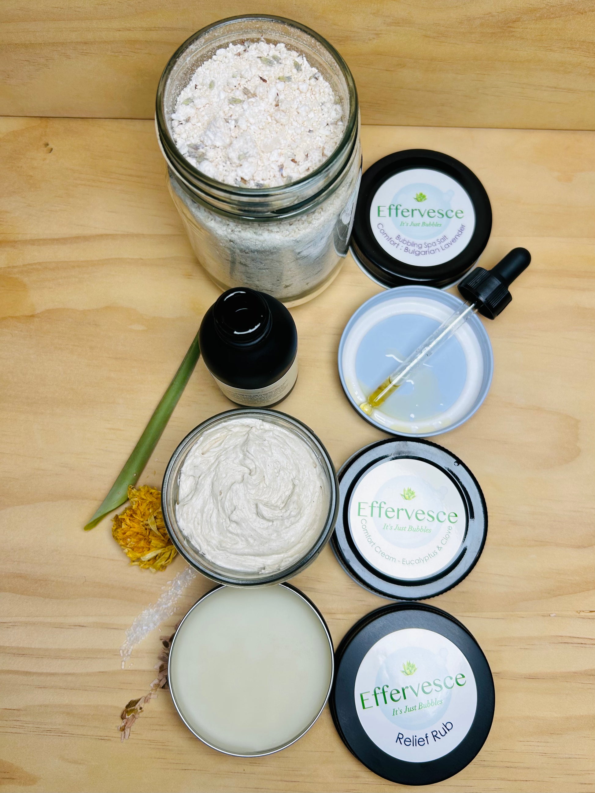 I love the pain relief bath soak , balm and butter . It's definitely helped with pain in my back, leg and sciatica.