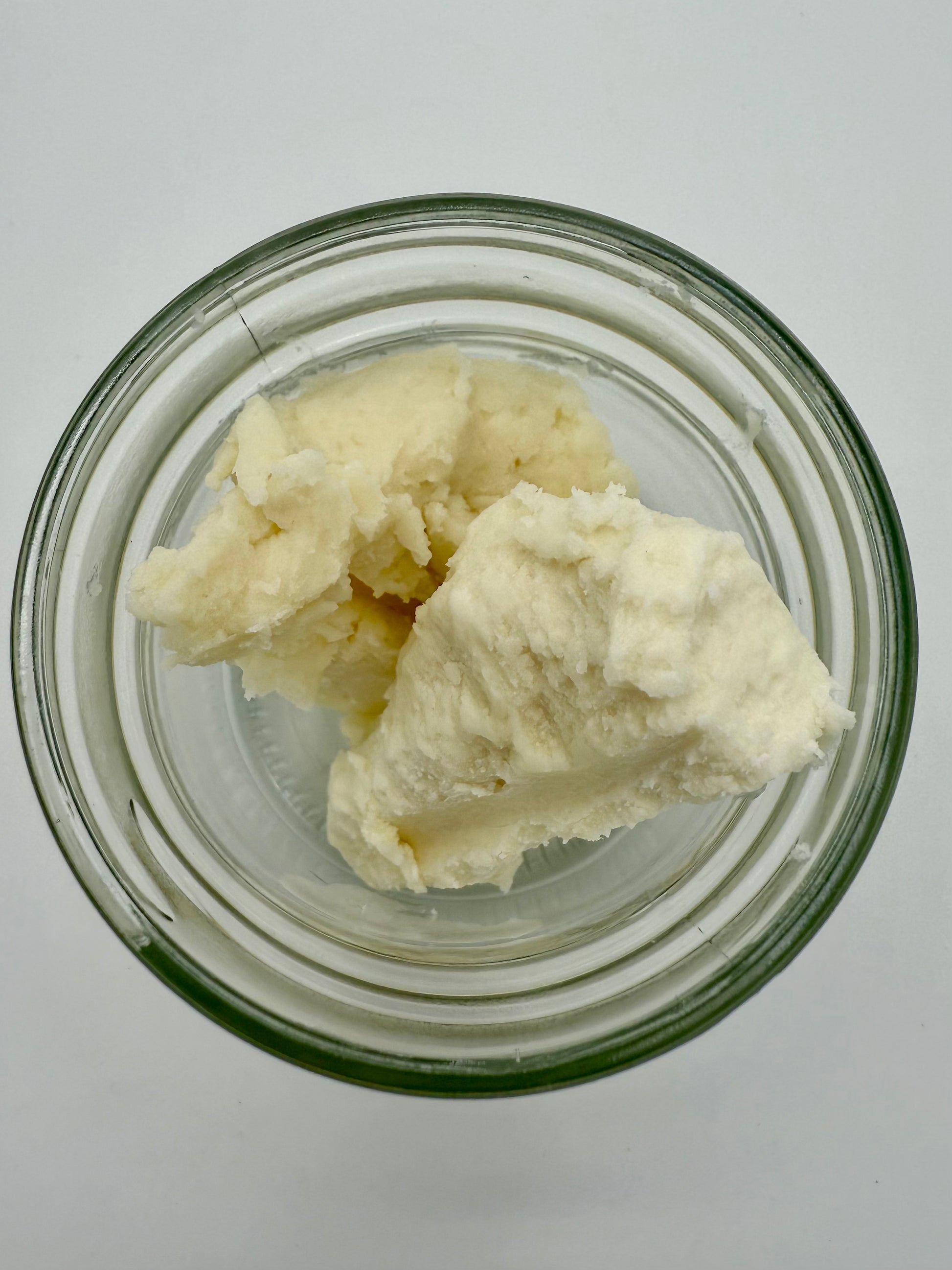 Our raw, unrefined shea butter is a nutrient powerhouse with a smooth, creamy texture and naturally healing properties. Ethically sourced from Ghana, this butter is rich in vitamins A, E, and F, making it deeply moisturizing and excellent for skin barrier repair.