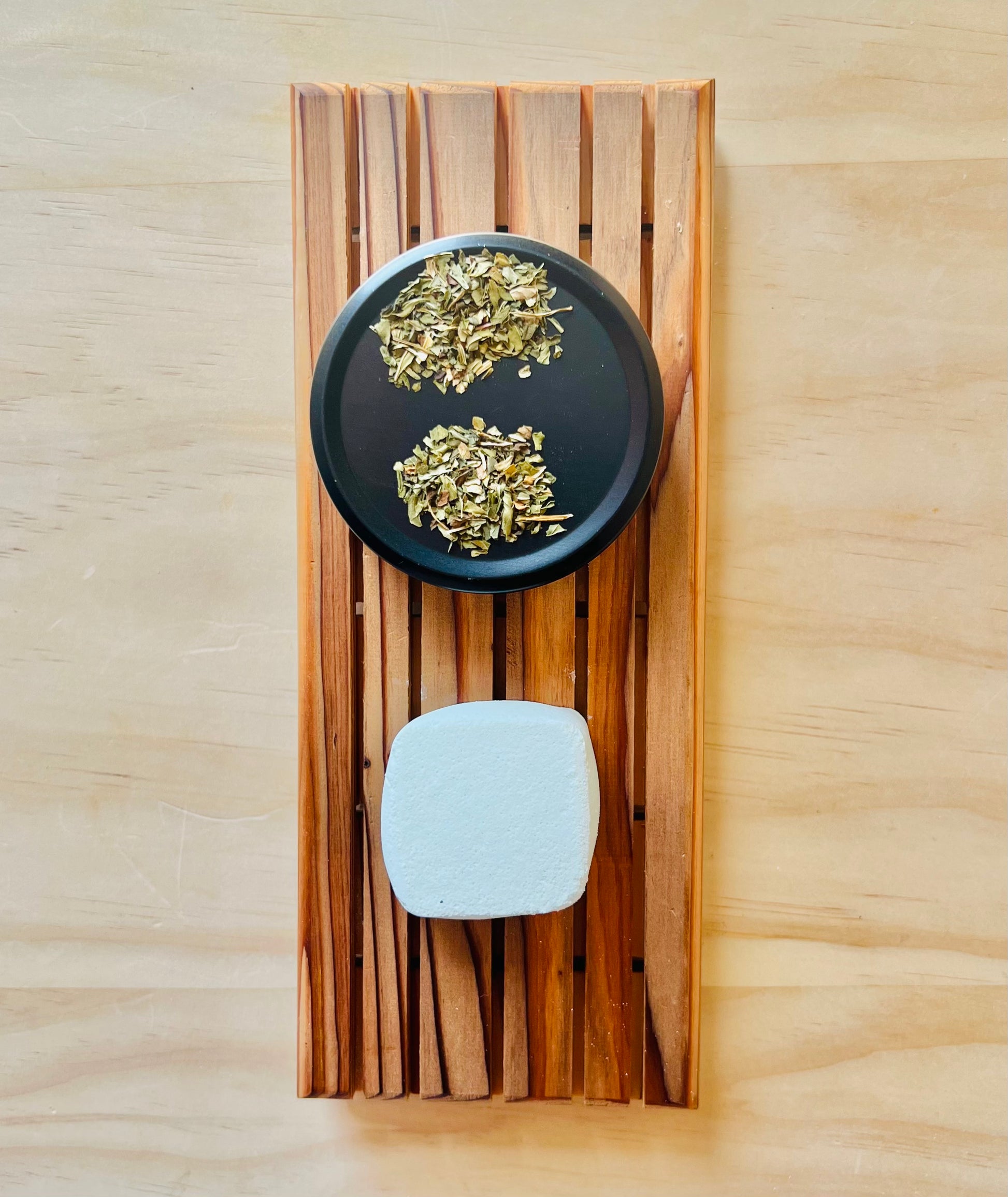 To prolong the life of the shower steamer after use, place it away from pooled water and onto a dry surface. Enhanced with our soap saver or dry cloth.