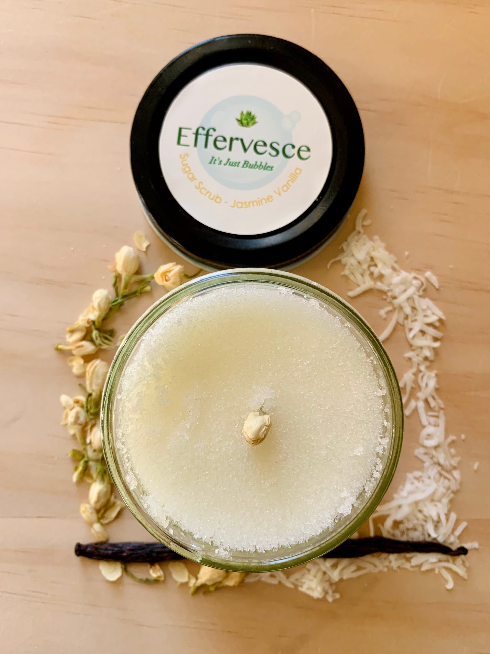 Sugar, Coconut Oil, Organic Coconut Milk Powder, Castor Oil, Glycerin, Jasmine Oil, Vanilla Bean infused into Sunflower Oil