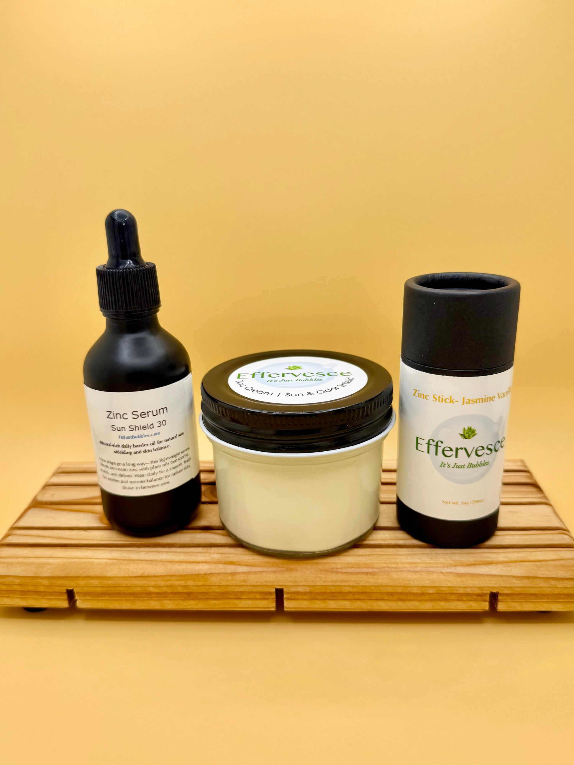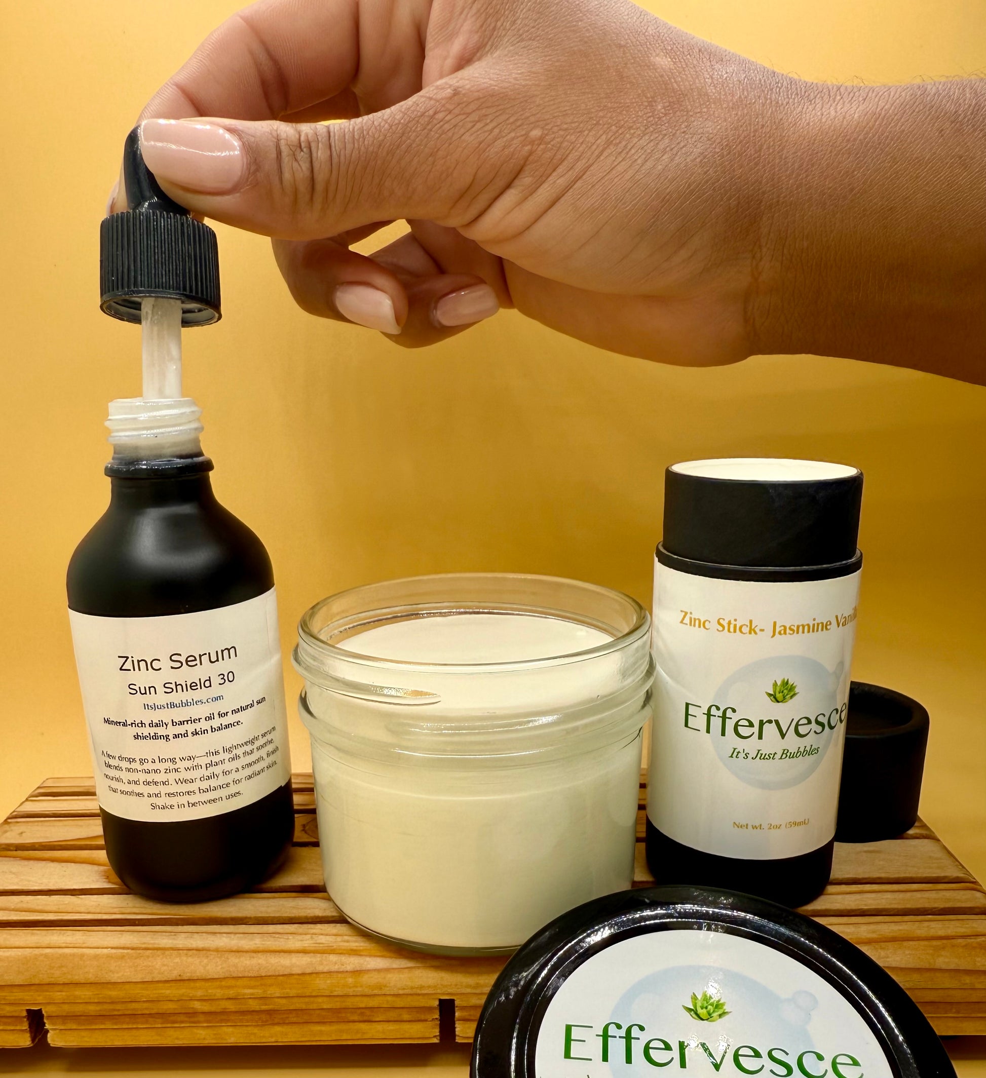 This is your all-in-one skin shield set—moisturizing, deodorizing, and helping to protect against everyday sun exposure. Made with rich shea butter, skin-loving oils, and a non-nano mineral barrier comparable to formulas labeled SPF 15–30, these products glide on smooth and absorbs fast—no white cast, no greasy residue.