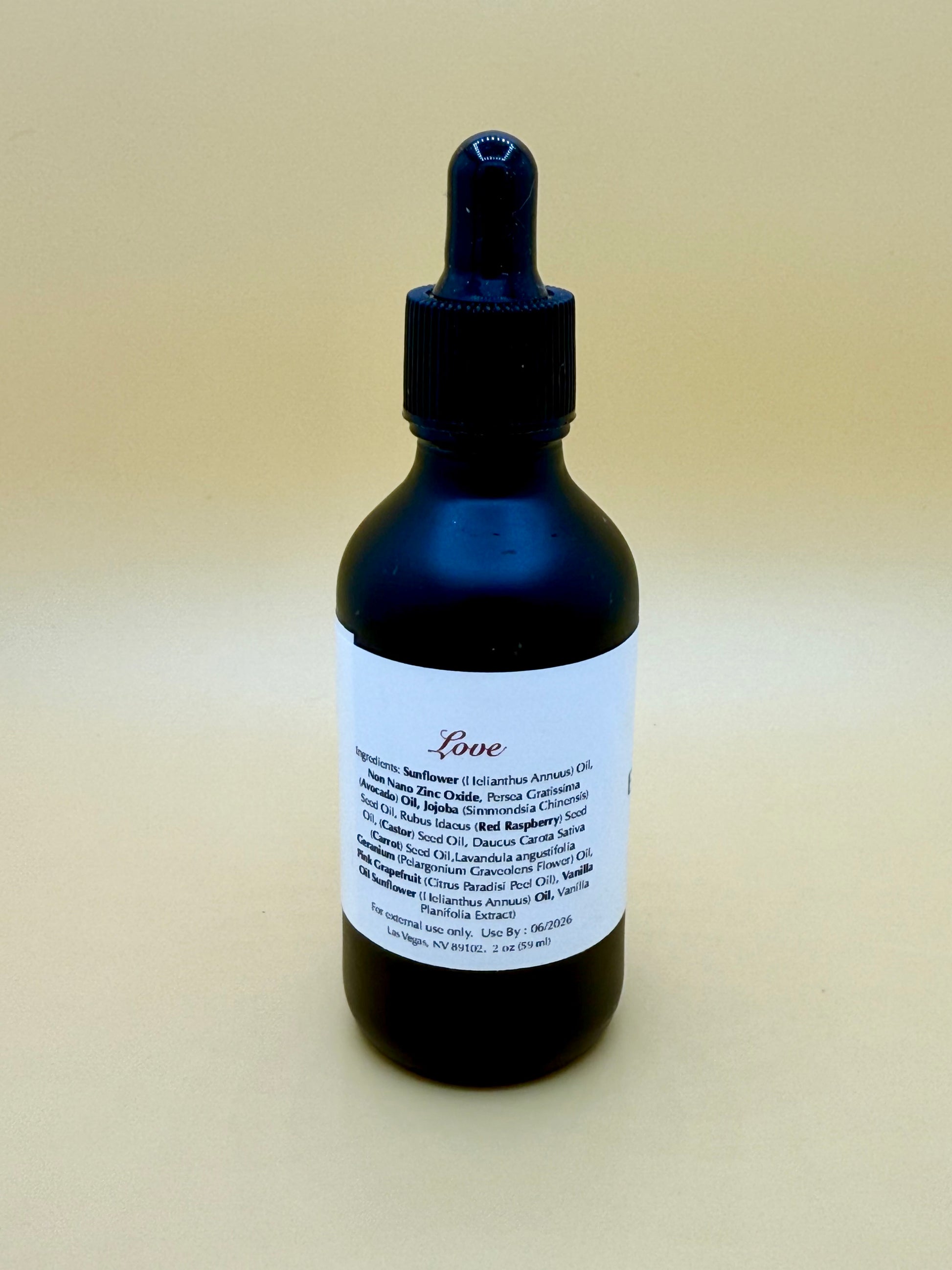 Natural Ingredients : Grapeseed Oil, Avocado Oil, Jojoba Oil, Red Raspberry Seed, Rosehip Seed Oil, Carrot Seed, Non-Nano Zinc Oxide, Vitamin E (Tocopherol), Essential Oil of your choice.